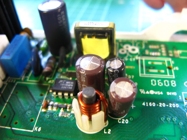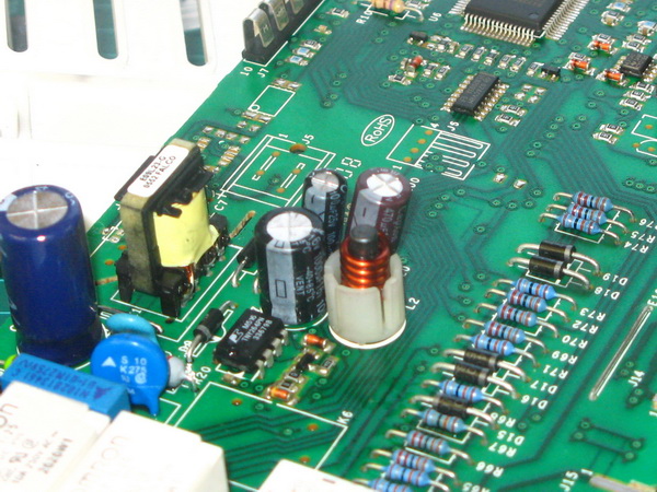 The wife said the machine has been getting worse over the past few months so I immediately had my suspicions...........Ahhh!, look at that electrolytic (C17 = 680uF, 10v) on the power supply section of the board, the top is bulging, she's dried out.