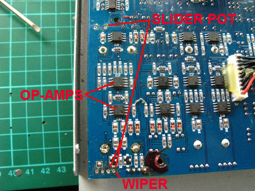 Pulling the desk apart the first port of call was to scope the output from the final drive op-amps (MC3371 type SMD dual channel) that output the MAIN L-R signals onto the bus. RHS confirmed completely dead:-