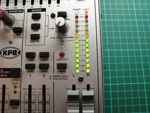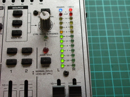 Here's the L-R mains output led's in action which as you can see RHS isn't working despite both faders being at the same level:-