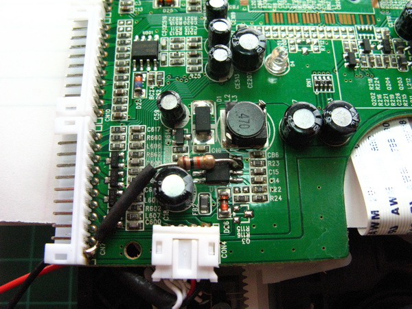 I ripped the Tv apart and on inspection the drive was getting +12vdc but there appeared to be no +5vdc present on the drive electronics at all. A quick look around and I noticed the Psu section of the drive electronics was using a CX4060 step down DC-DC converter.