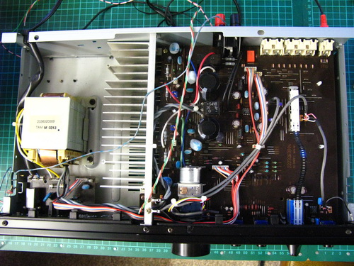Overview of the amplifier internals with the new motorized pot fitted and awaiting the control pcb: