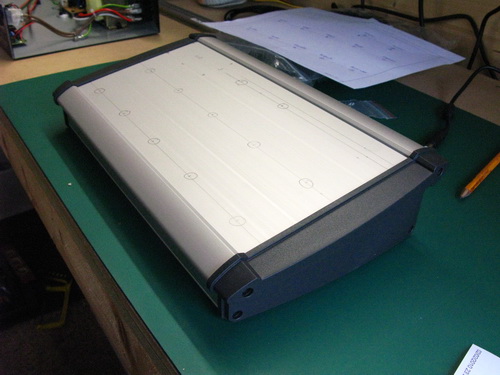 27/06/11 - The pedal enclosure. I've started to mark out the switches, LEDs & LCD positions.