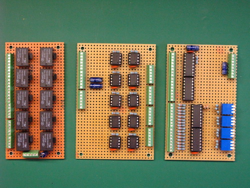 30/06/11 (& 07/07/11) - Here are the three pcb's pending testing. The Switch Interface Pcb, LED Driver Interface Pcb and on the far right the I2C Pedal pcb. There was originally just 2off pcb's, but a small design changed requires a 3rd (relay board).