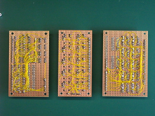Underside of the 3 pcb's. Great fun to do a good amount of prototyping!: