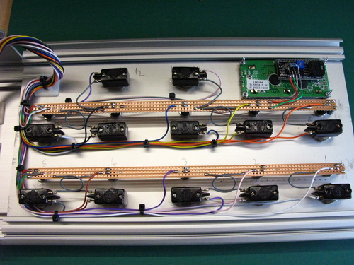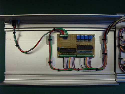 Wiring complete. 7/0.2mm wire used throughout, doubled up on various runs i.e. +5vdc & 0vdc. I also fitted a few supply de-coupling capacitors throughout to help keep the +5vdc supply as smooth as possible.