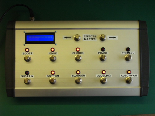 The 2 rows of 5 switches/LEDs are for turning effects on/off, and the 2 switches at the top will be used for the Effects Master Select function: