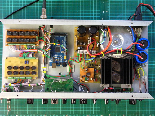The Arduino Mega inside the amplifier interfaces the panel pushbutton switches & LEDs via a couple of pcb's that i've designed to bridge the switches and leds to the Arduino; a Switch Interface Pcb and an Led Interface Pcb.