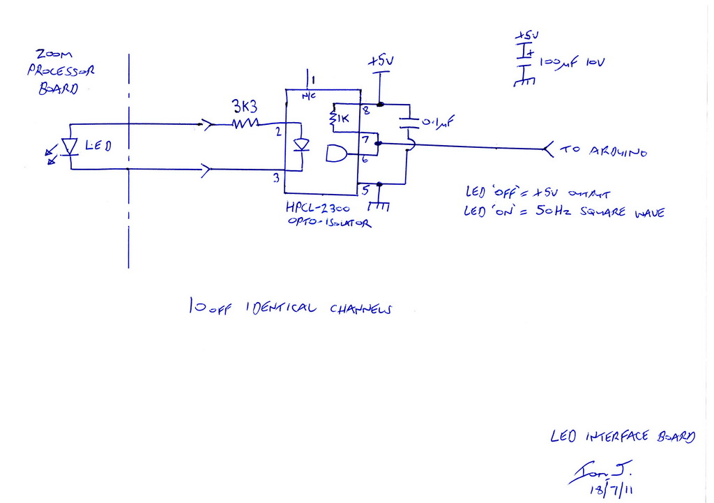 So everything is basically working, the only hardware issue I have is with the LED detection on the Zoom Processor board. It's due to the way the on-board LEDs are driven (phase shifting) that my opto-isolators are picking up spurious phase differences and switching on when it shouldn't be just for a second or so before it settles.