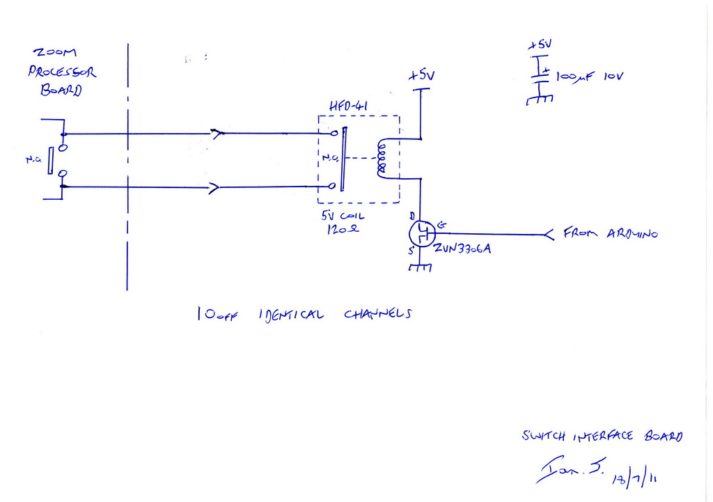 SWITCHES - Digital outputs from the Arduino will drive 10off relays (Switch Interface Pcb) which will then interface to the Zoom processor board.