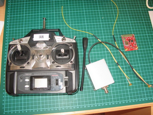 The kit comprises a cased Tx module (c/w whip antenna) and Rx pcb. The idea being that the Tx module is cabled to the buddy port of the radio where it picks up the PPM output of the radio. The Rx pcb is installed in the plane thus replacing the usual 8ch 35Mhz Receiver. There is actually 8ch & 12ch Rx pcb's available, I chose the 12ch version it has an RSSI output (see the DakarOSD article for how I made use of this).