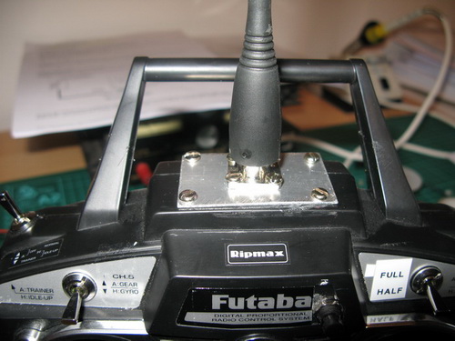 Most folks 'strap' the Tx module to the back of their radio, and possibly a battery velcro'd somewhere. However, I wanted to integrate my Tx Module directly into the radio, and replacing the 35Mhz antenna completely with the 430Mhz whip. I wanted it all completely hidden away, no wires, no mess.