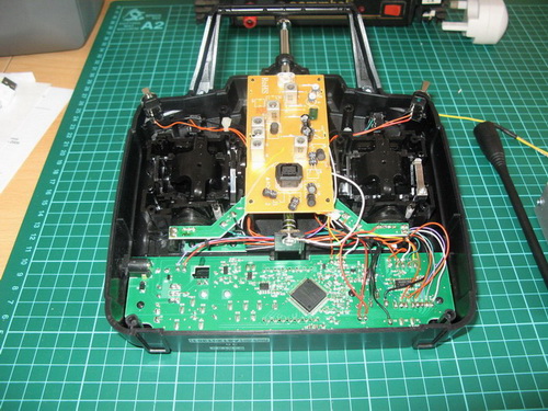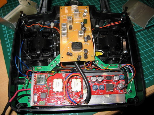 So, I ripped apart Thomas's Tx module to release the pcb's, 1off Tx board and a power supply board. Then I ripped apart my Futaba 6EXP and found space inside it for the LRS.