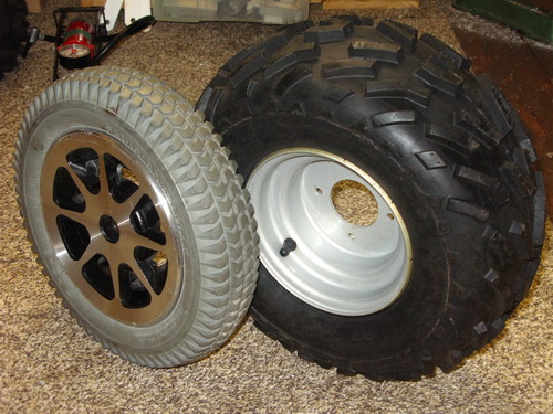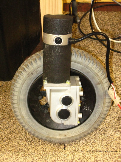 15/05/11 - Jazzy 1103 Wheelchair DC motor. The wheel is from the original wheelchair and will do for testing, but the final wheel will have to be wider and chunkier for off-road use.