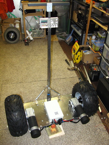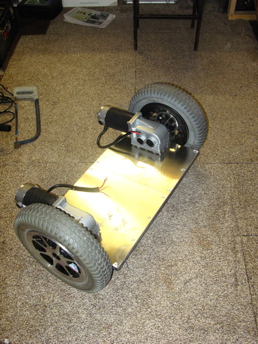 Here's me demo'ing my build so far. A key feature is the low centre of gravity, note the actual platform is below the axles.