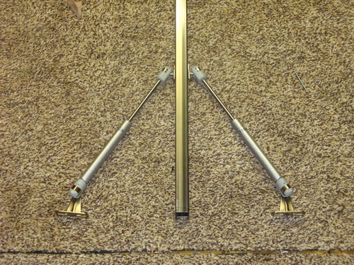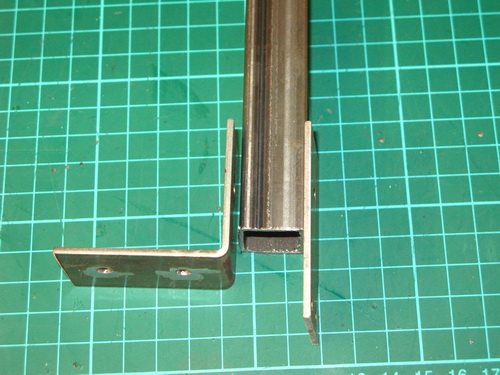 This is a mock up of the pivot/mounting brackets which will be mounted at the front of the platform. They've still to be bent slightly to have the T-bar lean forward.