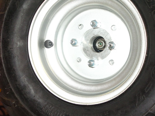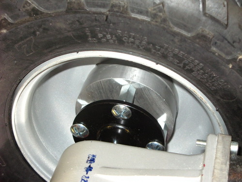 12/01/12 - Fitted the wheel adaptors properly today. Aluminium billet cut to size & drilled to allow removal as normal from the outside. M8 steel bolts hold it together so it should be strong enough, and hopefully not too much more stress on the motor shafts.