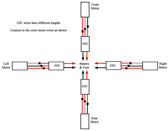 Project 013 - RC Quad Copter - Page 4 - Pre-Build - Wiring Details Published: Saturday, 05 December 2015 Hits: 31220 Article Index Project 013 - RC Quad Copter Page 2 - Pre-Build - Ordering the parts Page 3 - Pre-Build - Getting technical Page 4 - Pre-Build - Wiring Page 5 - Construction - Motor mounts Page 6 - Construction - Framework/Pod Page 7 - Construction - Wiring Page 8 - Flight systems testing Page 9 - Night Flights All Pages Page 4 of 9 WIRING Various wiring diags, including motor/ESC arrangement. Prev Next