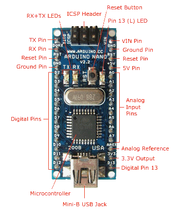 Just about any Arduino version can be used, incluing the Atmega 168 models, however I chose the NANO due to it's size and the fact it has the mini USB jack built in.