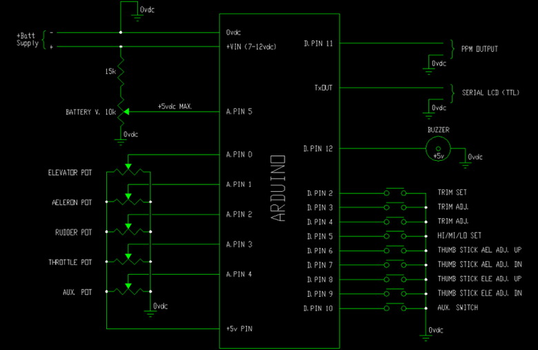So (I must be mad) I re-invented the wheel per se by building my own standalone Joystick Radio Tx using a couple of old PC joysticks, an Arduino and the Tx pcb from Thomas Scherrer's LRS kit.