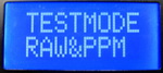 The Test Mode allows all the PPM output channels to be displayed in uS, and the raw analogue inputs in counts 0-1023.