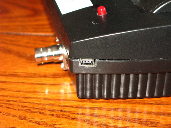 Charge socket on the side & the 430mHz Tx bind/failsafe button in the foreground:-