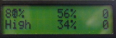 Close up of the 16x2 LCD showing some of the screens including: